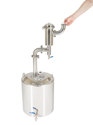 Заключительный этап очистки — сухопарник с краном для слива. На его стенках происходят повторная конденсация и переиспарения спирта. Одновременно с эффективной очисткой происходит и ароматизация напитка. (Попробуйте добавить в сухопарник цедру лимона или ароматные травы).